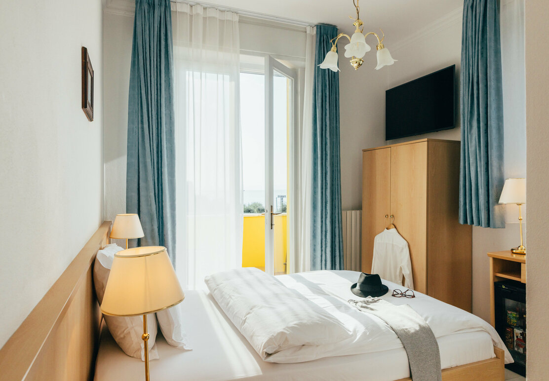 Camera singola con vista sul lago ed esposizione a sud, con bagno nuovo e moderno con doccia/WC, bidet o doccetta igienica, Naturals - cura tonificante e naturale con prodotti bio preziosi, asciugacapelli, telefono, cassaforte, minibar, aria condizionata, TV a schermo piatto, connessione wi-fi gratuita, radio, canale informazioni e balcone.